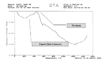 また、本発明の組成物と珪砂、フェノール樹脂を配合した上記のテストピースを用いた示差熱試験(図6)では、200℃における有機シリカ化合物の生成と、400℃における有機シリカ化合物の熱分解が確認された。