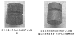 30Φ×50mmの304ステンレス金属片に、MX溶液をスプレーし、次いでアルコールを乾燥除去することにより皮膜を形成した。上記処理をしていない304ステンレス金属片とともに、硫化水素雰囲気において700℃で36時間加熱した。
