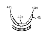 前記掬いの横断面の形態は、上向きのV字形と略一致する形態になっていて、対向する一対の足部はその底部端の湾曲部にて結合されており、足部の上方の自由端部は、細長い掬いを通過させようとする広範囲のゴブサイズのうちの最大のゴブ幅に比べて、より大きい距離の間隔を隔てており、湾曲部の半径は、ゴブサイズのうちの最小サイズのゴブの半径に比べて、より小さい半径を有していることを特徴とする細長いゴブ掬い。 - さらに、屈曲した前記掬いの下方に設けられたマニホールドを備えていて、前記マニホールドは冷媒が循環する通路を有しており、前記掬いの足部のゴブ接触表面を冷却する、