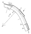 [1]細長い揺動可能なゴブ掬いであって、溶融ガラスゴブを該装置の入口から該装置の出口へ搬送するための掬いにおいて、前記部材は、前記装置の長手軸線に対して平行に延在してなる平面において、高い位置にある入口から低い位置にある出口へと屈曲していて、前記部材の横断面の形態は、上向きのV字形と略一致する形態になっていて、対向する一対の足部はその底部端の湾曲部にて結合されており、足部の上方の自由端部は、細長い部材を通過させようとする広範囲のゴブサイズのうちの最大のゴブ幅に比べて、より大きい距離の間隔を隔てており、湾曲部の半径は、ゴブサイズのうちの最小サイズのゴブの半径に比べて、より小さい半径を有していることを特徴とする細長いゴブ掬い。