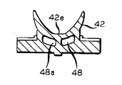 ゴブ掬い(20,40)の横断面の形態は、上向きの略V字形になっていて、屈曲した部材(22,42)は曲線状の湾曲部(22e,42e)を有していて、ここから上方向に曲線状の対向する足部(22c,22d;42c,42d)が延在している。