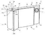 回動部5は、上方から見た形状が略L字状に形成されており、上下方向の長さが装置本体2の上下方向の長さと略等しくなっている。この回動部5は、装置本体2の右側部に回動可能に支持されるベース片21と、このベース片21に連続する立上り片22からなっている。