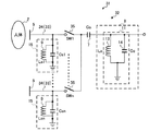 さらに、応用分野が広がり、通信装置を搭載する機器の大型化に伴い受信電極と共振回路との間が離れ、配線が長く引き回されている場合には、配線と機器の金属筺体(グランド)との間の寄生容量が大きくなって情報信号が減衰すると共に、外来ノイズが混入しやすくなり、通信エラーの確立が著しく増大するという問題があった。この場合、同軸ケーブルを配線として用いることで外来ノイズの混入を減少させることができるが、芯線とシールドとの間で寄生容量がさらに大きくなって情報信号が大きく減衰するという問題があった。