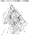 図18に示した下部アーム72a,72bは、一端が下部ガイドレール71a,71bに摺動自在に係合し、他端が下部補強部材22bに設けられた回転軸受け部77a,77bに回転自在に支持されて、上部アーム62a,62bと共に連動する。下部補強部材22bは下部フレーム21a,21bに取り付けられて固定される。