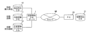 本システムは、ネットワークNWを介して接続されている部品情報データベースサーバ1と端末装置20から主に構成されている。