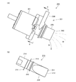 2つの電極215を通して振動子213に電圧が印加されると、振動子213が超音波振動する。振動子213が超音波振動すると、振動子213に接着されているホーン210に振動が伝わって、ホーン210の端部211は、振動子213が振動する超音波の周波数で振動する。