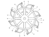 また、バケットホイール14はホイールボス17とホイールリム18とを連結する複数のスポークフレーム19を有しており、これらのスポークフレーム19によって形成される扇形の開口部はスポークフレーム19を補強する複数の補強板20によって閉塞されている。