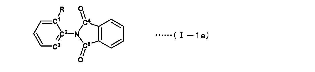 αとしては、隣接する4つの原子、C(イミドのカルボニル炭素)−N(イミドの窒素)−C(芳香環)−C(芳香環)の成す以下の(1)〜(4)の4種の二面角の内、絶対値が最小のものとする。なお、C1〜C5は下記式(I−Ia)に示される。