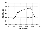 したがって、熱疲労特性の観点からは、N含有量は0.015〜0.040mass%、V含有量は0.15〜0.60mass%の範囲にあり、かつ、(V×N)の値は0.003〜0.015の範囲にあることが必要である。