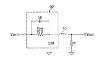 図9は、第二の実施形態に係る送信側ドライバ回路92の詳細な構成例を示す回路図である。本発明の第一の実施形態に係るドライバ回路91と異なる点は、インダクタンスL41の替わりにキャパシタンス(第1の受動素子)C41を備え、インダクタンスL42の替わりにキャパシタンス(第2の受動素子)C42を備え、抵抗R14、抵抗R24、抵抗R19、抵抗R29が排除された点にある。構成は実施例1とほぼ同様なので、詳細な説明を省略する。