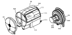 図8に示すようにサイクロン集塵装置3は、略円筒形状で一端321が開口し、他端322が閉塞したサイクロン室本体32と、サイクロン室本体32の閉塞端面322に取り付け固定されるカバー33と、サイクロン室本体32の開口端面321に脱着自在に取り付けられるキャップ34とから構成されている。