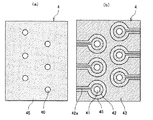 トナー通過穴41は、形成するドット径のサイズで決定するが直径φ30μm〜φ150μmである。制御電極42は個々にトナーTの通過をON、OFF制御するためのドライバ回路(駆動回路)に接続するためのリードパターン42aが接続され、また共通電極43は共通のリードパターン43aに接続されている。また、絶縁基板45の印写面側(記録媒体手段3側の面)はトナー通過穴41が開口した状態である。