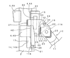 - 請求項3に記載の仮設足場用筋交において、前記揺動阻止部は、前記2個の面状部のうち、少なくとも一方の面状部の一部から他方の面状部の側へ突出した突出部となっており、この突出部は、前記保持部よりも上方であって、この保持部よりも前記筋交本体の側の位置に設けられていることを特徴とする仮設足場用筋交。