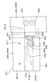 回動部材339の外周部の一部にはギヤ歯339Cが形成されており、このため、この実施形態の回動部材339も、図16で説明した実施形態に係る第2処理装置38の回動部材42と同じく、一部にギヤ歯339Cが形成されたセクターギヤとなっている。また、処理装置337には、図16で説明した実施形態に係る第2処理装置38と同じく、2個のロータリー式のダンパー402が配置され、これらのダンパー402のピニオンギヤ403は、回動部材339のギヤ歯339Cと噛み合っている。これらのダンパー402の構造及び作用は、図16で説明した実施形態に係る第2処理装置38のダンパー102と同様になっており、このため、ピニオンギヤ403の回転中心軸404には、ワンウエイクラッチを介して複数のブレードが取り付けられており、回動部材339がC’方向に回動することでピニオンギヤ403及び中心軸404がE’方向に回転した場合には、ワンウエイクラッチを介してそれぞれのブレードが、ダンパー402の内部に充填されている粘性流体内において回転する。このため、粘性流体の抵抗力により回動部材339は、C’方向へ低速で回動することになる。一方、回動部材339がC’方向とは逆のD’方向に回動し、ピニオンギヤ403及び中心軸404がF’方向に回転した場合には、このF’方向への回転は、ワンウエイクラッチの切断作用によりそれぞれのブレードに伝達されない。このため、回動部材339は、D’方向へは高速で回動することができる。
