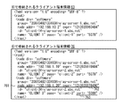 図14の3番目の枠内は、クライアント端末情報62を示す。「div」として、「software」が設定されている。「group」として、「20070402133100@relay−server−1.abc.net」が設定されている。「id」として、「client−1@relay−server−1.abc.net」が設定されている。「name」として、「CLIENT 1」が設定されている。「pass」として、「client−1」が設定されている。