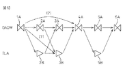 図2は、各局舎に配置可能な光伝送装置の種類の一例を示す図である。図2の表300に示すように、各局舎に配置可能な光伝送装置の種類には、たとえばOADM310と、ILA320と、バイパス330と、がある。OADM310は、任意の波長信号に対して光再生中継器を配置可能な光伝送装置である。光再生中継器は、リアンプリフィケーション(Re Amplification)、リシェイピング(Re Shaping)及びリタイミング(Re Timing)を意味する3Rを行うことができる。