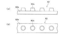 次に、図11(a)(b)および図12により、本発明の第2の実施の形態について説明する。図11(a)(b)および図12に示す第2の実施の形態は、基板シート61に圧力を加えて、基板シート61に平板状部材62の平板凸部62aに対応する基板凸部61aを形成する代わりに、平板状部材62に圧力を加えて、基板シート61に平板状部材62の平板凸部62aに対応する基板凹部61pを形成するものである。そして、導電性ペースト70が、基板シート61の基板凸部61a上に転移される代わりに、基板シート61の基板凹部61p上に転移されるものである。その他の構成は図1乃至図10に示す第1の実施の形態と略同一である。