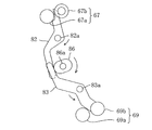 前記供給ローラ対69は、不図示のモータにより駆動される駆動ローラ69aと、この駆動ローラ69aに対して圧着される従動ローラ69bとからなる。この従動ローラ69bの駆動ローラ69aに対する圧着状態は、後述の如く解除することが可能になっている(スイッチバックローラ対67の従動ローラ67bも同様)。