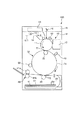 画像出力動作開始信号が発せられると、先ず、給紙ローラ22aにより、カセット21aから転写材mが一枚ずつ送り出される。そして、給紙ローラ対23によって転写材mが給紙ガイド24の間を案内されてレジストローラ25a、25bまで搬送される。その時レジストローラ25a、25bは停止されており、転写材mの先端はレジストローラ25a、25b間のニップ部に突き当たる。その後、画像形成部10が画像の形成を開始するタイミングに合わせてレジストローラ25は回転を始める。この回転時期は、転写材mと画像形成部10より中間転写ベルト31上に一次転写されたトナー画像とが二次転写領域T2において一致するように、そのタイミングが設定されている。