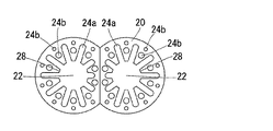 具体的にいえば、略長円形に設けられたそれぞれの通孔24aの一端が、軸孔22の一部と連続し、放射状に伸びた態様となっている。