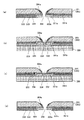 先ず、図30(a)ないし(d)は前述した図28(a)ないし(d)と同様であるので説明を省略する。そこで、図30(e)に示すように、SiO2膜433上に、ノズル404の近傍において、ワイピング方向に平行で且つ、ノズル404のエッジ部にパターンが形成されないようなフォトレジストパターン481をフォトリソ(露光、現像)によって形成する。このとき、レジストの塗布は、ノズル404の液室面よりN2ブローで気流482を流しながらスプレー塗布を行うことで、レジストが液室面に回りこむことを防止できる。