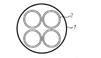 図1と図2は本発明の第1の実施形態を示す図である。先ず図1に示されるように、外側鋼管1の内部に複数本の内側鋼管2を挿入する。外側鋼管1及び内側鋼管2としては通常の機械構造用の鋼管を用いることができるが、強化用の合金元素を添加した高強度鋼管を使用してもよい。本発明では外側鋼管1の内部に複数本の内側鋼管2を圧入する必要はないので、図1のようにゆとりを持たせて内側鋼管2を挿入することができる。なお内側鋼管2は複数本とし、この実施形態では4本である。また内側鋼管2の断面形状は円形であっても角形その他の異形であってもよいが、この実施形態では通常の丸鋼管である。