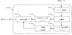 画像復号装置200は、ビット受信部201、符号化ビット用バッファ202、復号処理部203、分離部204、バースト誤り情報バッファ205、予測値生成部206を備える。