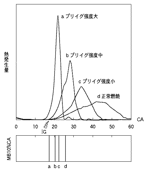 例えば、図7(a)の1000rpm/ce0.9の条件でのプリイグ強度は、補正前の初期条件ではX10(正常燃焼マップ)−X10(プリイグマップ)=15−25=−10となり、プリイグ発生タイミングが正常燃焼MB10%CAより後になるため、プリイグは発生しないと予測できる。