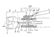 次に、図8は、本実施形態の第2変形例を示したものであり、本変形例の光ファイバ保持構造35は、スペーサとして、ホルダ部2に一体的に形成された環状部32を備えている点については、図5、6に示した構成と同様である。