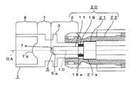 次に、図2は、本実施形態の第1変形例を示したものであり、本変形例における光ファイバ保持構造20は、スペーサが、フェルール11の外周に着脱可能とされた環状体18からなる点については、図1に示した構成と同様である。