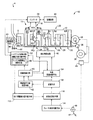 図4は、本発明に係る車両用駆動装置6を制御するための制御装置である電子制御装置40に入力される信号及びその電子制御装置40から出力される信号を例示している。この電子制御装置40は、CPU、ROM、RAM、及び入出力インターフェースなどから成る所謂マイクロコンピュータを含んで構成されており、RAMの一時記憶機能を利用しつつROMに予め記憶されたプログラムに従って信号処理を行うことによりエンジン8、第1電動機M1、第2電動機M2に関するハイブリッド駆動制御、自動変速部20の変速制御等の駆動制御を実行するものである。