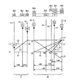 このとき、ハイブリッド制御手段84は、例えば第1電動機M1により発電された電気エネルギをインバータ54を通して蓄電装置56や第2電動機M2へ供給したり、第3電動機M3により発電された電気エネルギをインバータ54を通して蓄電装置56や第1電動機M1乃至第2電動機M2へ供給したりするので、エンジン8の動力の主要部は機械的に伝達部材18へ伝達されるが、エンジン8の動力の一部は電動機Mの発電のために消費されてそこで電気エネルギに変換され、インバータ54を通してその電気エネルギが他の電動機Mへ供給され、電気エネルギによりその電動機Mから出力される駆動力が伝達部材18へ伝達される。この発電に係る電動機Mによる電気エネルギの発生から駆動に係る電動機Mで消費されるまでに関連する機器により、エンジン8の動力の一部が電気エネルギに変換され、その電気エネルギが機械的エネルギに変換されるまでの電気パスが構成される。