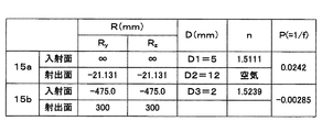 カップリング光学系15の変形例が図18に示されている。この場合も、第2のレンズ15bの射出面が特殊トロイダル面であり、その非球面係数が図19に示されている。