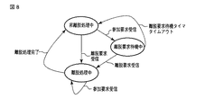 図8に示すように、本実施形態における切替状態遷移例では、切替状態は、非離脱待機中、離脱待機中および離脱要求待機中のいずれかである。離脱要求待機中とは、マルチキャスト制御ルータ1がある端末装置2の切替状態が非離脱状態である場合で当該端末装置2から離脱要求を受信する前に参加要求を受信した場合に、当該端末装置2から離脱要求を待機する状態を指す。