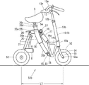 そして、前1輪後2輪の三輪自転車において、乗車時に左右後輪の間隔を広げ安定に走行させ、駐輪時に後輪の間隔を狭めて駐車場所を減少するようにしたものが知られている(例えば、特許文献2参照)。