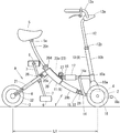 すなわち、後輪フレーム21は、左右前輪2を軸支した前輪軸2aと後輪3との距離を、第一長さL1で開脚した第一位置と、第一長さL1よりも短い第二長さL2で開脚した第二位置と、第一長さL1と第二長さL2との中間の第三長さL3で開脚した第三位置とで第一アーム20における外管部20aに第一ゲージ付ロック手段26により固定可能に形成している。