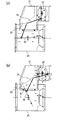 熱排風通過ケース43内の熱風通路42は、バーナケース40と第一熱風開口部cで連通する第一熱風通路46と、第一熱風通路46を通過した熱風を第二熱風開口部vから第三熱風開口部wを経て熱風室11に供給する第二熱風通路47とを設けている。
