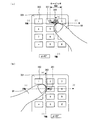 なお、入力の実行は、センサ内蔵液晶パネル301の表示面に指64が接触又は近接したと同時に行われてもよく、或いは、指64を当該表示面に一旦接触又は近接させた後、離す動作(アップ動作)がなされる際に行われてもよい。アップ動作時に入力が実行される構成では、ポインタ361の位置を指標にしたより正確な入力が実現可能である。   The input may be performed simultaneously with the finger 64 contacting or approaching the display surface of the sensor built-in liquid crystal panel 301, or the operation of releasing the finger 64 once contacting or approaching the display surface. It may be performed when (up operation) is performed. In the configuration in which the input is executed at the time of the up operation, more accurate input using the position of the pointer 361 as an index can be realized.