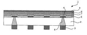 図7は、本実施態様の有機薄膜太陽電池の一例を示す概略断面図である。図7に示す例において、有機薄膜太陽電池1は、透明基板2と、透明基板2の一方の面にメッシュ状に形成され、透明電極5よりも抵抗値の低い第1補助電極3と、透明基板2の他方の面に形成された透明電極5と、透明基板2を貫通し、第1補助電極3および透明電極5を電気的に接続する接続導電部6と、透明電極5上に形成された正孔取出し層7と、正孔取出し層7上に形成された光電変換層8と、光電変換層8上に形成された対向電極9とを有している。
