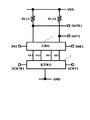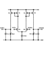 NMOSトランジスタN1、N2は差動対を構成し、出力OUT1は入力IN1と同相、出力OUTB1は入力INB1と同相となる。すなわち、IN1がHigh、INB1がLowのとき、OUT1=High、OUTB1=Lowとなる。IN1がLow、INB1がHighのとき、OUT1=Low、OUTB1=Highとなる。 The NMOS transistors N1 and N2 form a differential pair, the output OUT1 is in phase with the input IN1, and the output OUTB1 is in phase with the input INB1. That is, when IN1 is High and INB1 is Low, OUT1 = High and OUTB1 = Low. When IN1 is Low and INB1 is High, OUT1 = Low and OUTB1 = High.