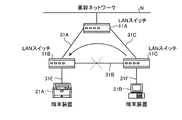 LANスイッチ11AとLANスイッチ11BとはLANケーブル31Aを介して接続されており、LANスイッチ11BとLANスイッチ11CとはLANケーブル31Bを介して接続されており、LANスイッチ11CとLANスイッチ11DとはLANケーブル31Cを介して接続されており、LANスイッチ11DとLANスイッチ11AとはLANケーブル31Dを介して接続されている。すなわち、LANスイッチ11A〜11Dは、ループ状に接続されている。LANスイッチ11A〜11Dには、複数の端末装置が接続されているものとする。