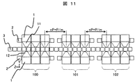 本発明の電機子ユニットを直列または並列に配置して構成した推力発生装置を説明する。図10は、電機子鉄心1を3個並列に並べた電機子鉄心ユニット100に電機子巻線2を磁石に対向するコアに設置したものである。図11はこの断面図を示す。