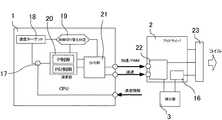 17はモータを所定の速度で制御するための速度ターゲット18とモータから得た速度情報との差分を算出する差分演算部、19は速度ターゲットに応じて制御方式を切り替えるための制御切り替え手段、20は演算部で、制御切り替え判定手段の出力に応じて演算方式を切り替える構成となっている。本実施例においては一例としてP制御(比例制御)とPID制御(比例積分微分制御)とが切り替えられる構成としているものの、切り替える制御方式は問わないものとする。21は出力部で制御切り替え判定手段の出力に応じてモータのプリドライバへ送出する信号を加速減速信号とPWM信号とを切り替える。22はプリドライバに設けられた受信信号切り替え手段で、制御部であるCPU1から受信する信号の種類に応じて、信号の伝達先を切り替える。加速減速信号の場合は3の積分器へ接続し、PWM信号の場合は直接コイルに通電するためのスイッチ群23へ接続を行う。
