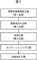 図3は、従来用いられている電子デバイスや化合物半導体基板用研磨工具の作製方法である。はじめに従来の方法により作製された定盤上の研磨粒子(砥粒)の固定化状態を詳細に調査した結果について述べる。図3の工程に従い、一例として以下のような条件で定盤の作製を行った。 FIG. 3 shows a method for producing a conventionally used electronic device or compound semiconductor substrate polishing tool. First, the results of a detailed investigation of the fixed state of abrasive particles (abrasive grains) on a surface plate produced by a conventional method will be described. According to the process of FIG. 3, a surface plate was produced under the following conditions as an example.