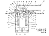 弁部材56は、上下方向の長さhのリング状の部材で、その上端は前記係止片53の直上部まで伸び、その外径は大径円筒部51とほぼ同じにされ、その外周面の前記横穴40と対向する位置には、横穴40より若干大きい円形の凹部58が形成される。そして、弁部材56の外周面は横穴40と例えば、0.5mmの隙間を有して対向し、横穴40の閉鎖時に横穴40の開口面積を閉鎖されない大の状態から小の状態にする。このように横穴40の閉鎖は開口面積が小さくなることである。