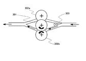 カール除去ローラ302aおよび302bは弾性ローラであり、発熱ローラ301に押し当てるように構成されており、これらカール除去ローラを押し当てることで、発熱ローラ301との接触部(すなわちニップ部)にニップ力を生じさせている。カール除去ローラ302aおよび302bは、発熱ローラ301の回転に従動して回転するものであるが、モータによりこれらカール除去ローラを駆動する構成としてもよい。