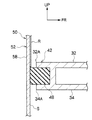 つまり、フィルム状のシート部材52の各境界部54に相当する部分を裏面側へ折り込むようにして真空成形することにより、突出部56が形成されるようになっている。そして、各突出部56の先端部(車体前方側端部)は、図4、図5で示すように、遮光壁42、44の先端部(車体後方側端部)に設けられた緩衝部材48に当接(圧接)するようになっている。