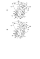 図7(b)に示すリンク機構Lk2の例は、ロアアーム19が長く左右支持部材25,27がハの字に傾斜する。ロアアーム19が左右アーム18,20の別体となる。したがって、アッパーセンタジョイント軸57を中心にヘッドパイプ13がロール角度R2(38°57′23″)で傾斜すると、リンク機構Lk2aとなり、左右支持部材25,27、すなわち、外輪33の傾斜角α2(40°41′45″)と内輪31の傾斜角β2(37°30′4″)とがα2>β2の関係となる。