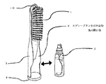 (イ) ヘアーブラシ部分(1)の下部、通常のヘアーブラシの把手がある部分に脱着可能なスプレーボトル(2)をはめ込む為の開口部(3)を設ける。