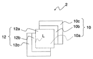 電極群2は、正極3および負極4にそれぞれ後述する放熱部10b、12bが設けられることから、正極3である電極板と負極4である電極板とを、セパレータ5を介して、かつ、厚み方向において重なり合う部分と重なり合わない部分とが出来るように積層することにより形成される。重なり合う部分は、集電体本体10a、12aであり、重なり合わない部分は放熱部10b、12bおよびリード部10c、12cである。